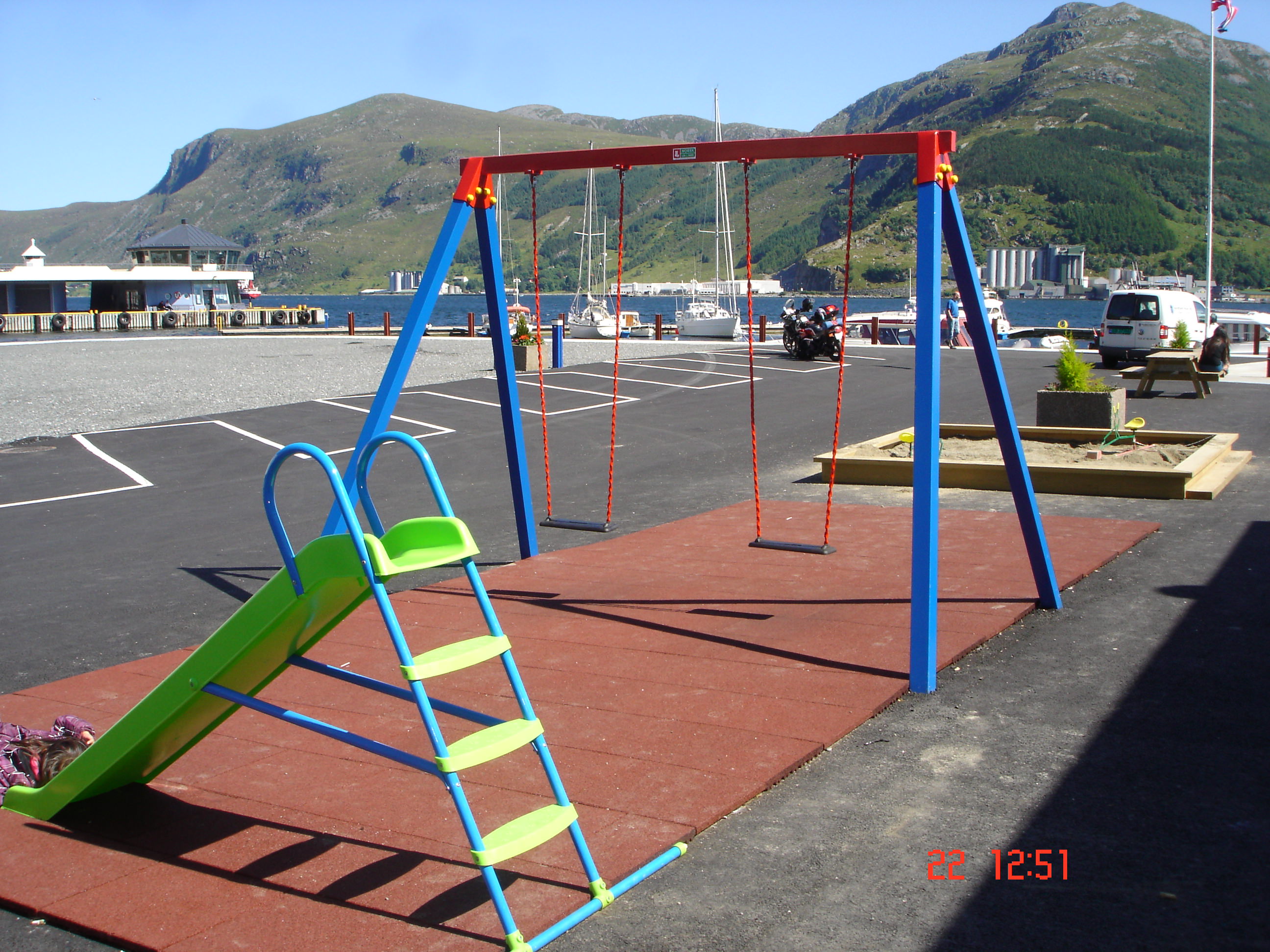 - Midt i Måløy sentrum, sør for hurtigbåtterminalen